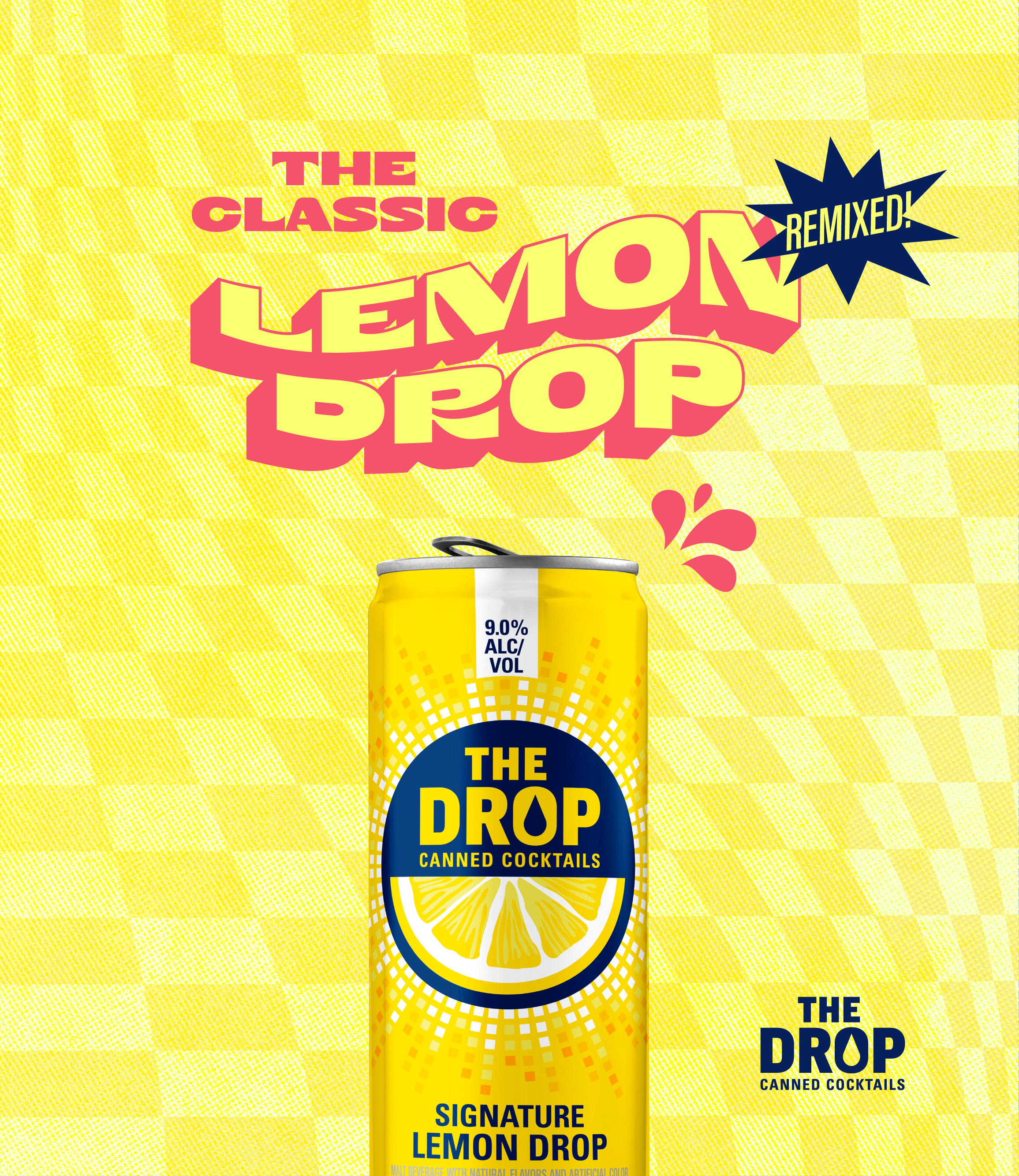 The Drop is a bold, high-ABV canned cocktail, inspired by the classic lemon drop shot, created by industry powerhouse, Constellation Brands.